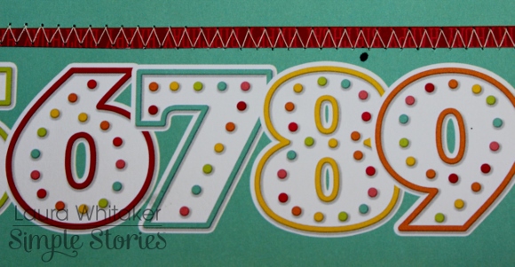 I have created text in three areas so I suppose any of them really could have been the title for this page, but I am going with this clear sticker combined with number stickers as my official title.  I just love the variety of fonts and styles of these products, and the clear stickers are magic layered over patterns.