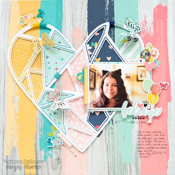 The second layout of this post is all about my daughter, and the gorgeous Faith collection.  This is by far my favorite Simple Stories collection!;  it is just so beautiful, and can be used in so many paper crafts, from Bible journals to every day pictures.