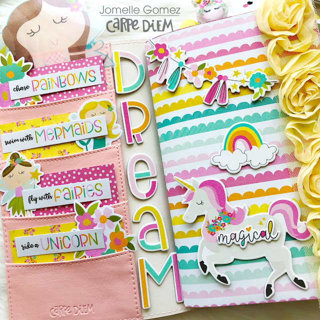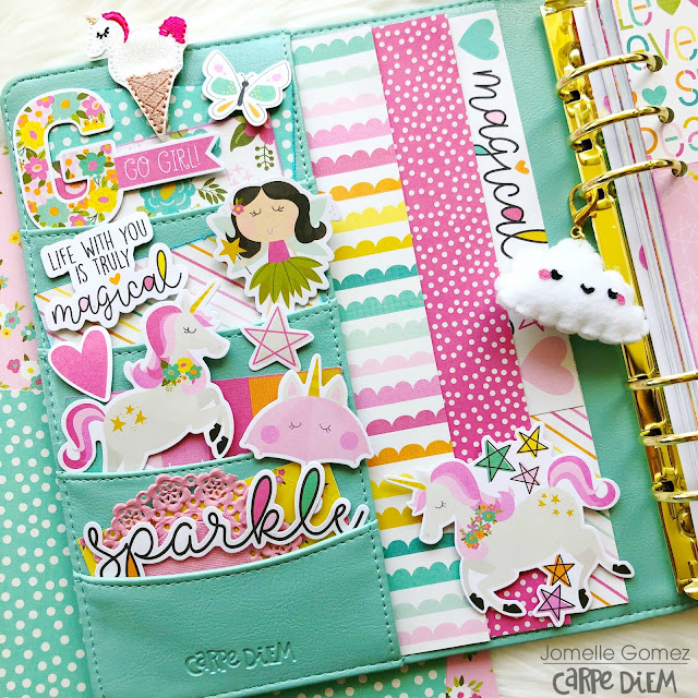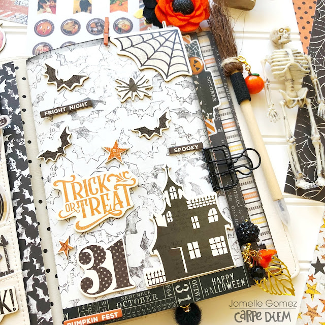 Creating this insert cover was super easy. All I did was cut the "jeepers creepers" 12x12 paper to the size of my TN. Then I added chipboard stickers to decorate. I also added a washi tape on the bottom of the page. That's it. Super easy huh?