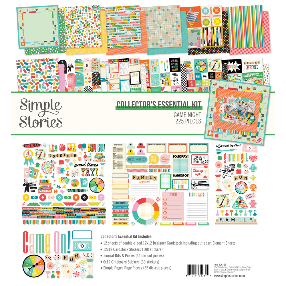 12 sheets of double-sided 12x12 Designer Cardstock including cut apart Journal, Tags and Element Sheets and a 12x12 Cardstock Sticker Sheet (108), Journal Bits (44), 6x12 Chipboard (39), Page Pieces (22); 225 pieces