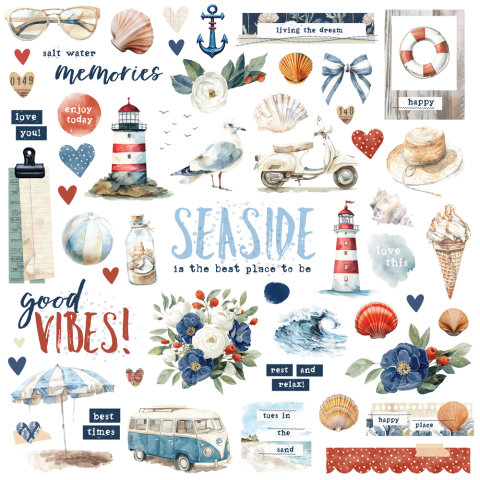 Simple Vintage Sand & Sea Chipboard Pieces - Unit of 6