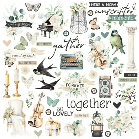 Simple Vintage Timeless Harmony Chipboard Pieces - Unit of 6